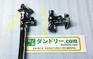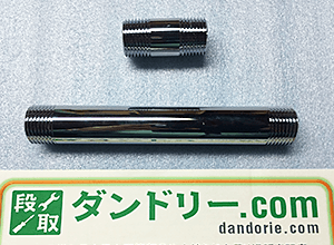写真のように、壁からと床からの止水栓本体に行くまでにニップルと呼ばれる両側にねじ加工された給水部材があるのですが、 この長さは現場に応じて、長くしたり、短くしたりと調整が必要となります。