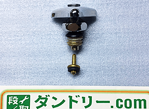 写真のように、止水栓を分解してみますと、止水栓本体内には写真のような「ケレップ」と呼ばれる、先端がゴムで出来た、水を流したり止めたりする「当たり面」の部品と、「スピンドル」と呼ばれる、ハンドル操作でケレップを上げ下げする軸部分の部品があり、ケレップとスピンドルが一体化した、寒冷地にも適した構造の商品を写真のように「固定コマ」仕様と呼び、対するケレップとスピンドル固定されていない形状の商品を写真のように「落としコマ」仕様といいます。