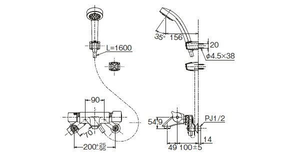 壁付サーモスタット混合水栓