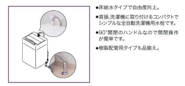 ●直接、洗濯機に取り付けるコンパクトでシンプルな全自動洗濯機用水栓です。