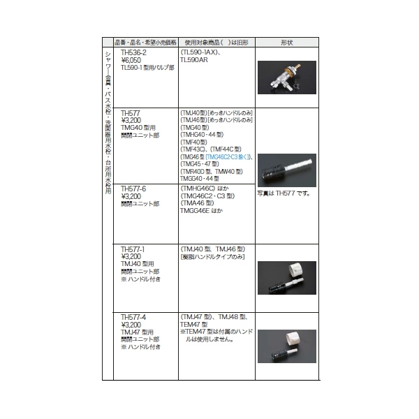 開閉ユニット部 の商品について、以下の品番商品がございます。