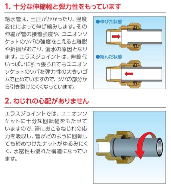 - 住宅の給水・給湯配管に多く用いられ、主にポリブデン管と架橋ポリエチレン管の2種類を使用。