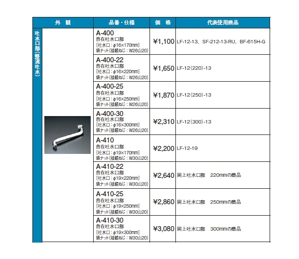 自在吐水口部の商品について、以下の品番商品がございます。