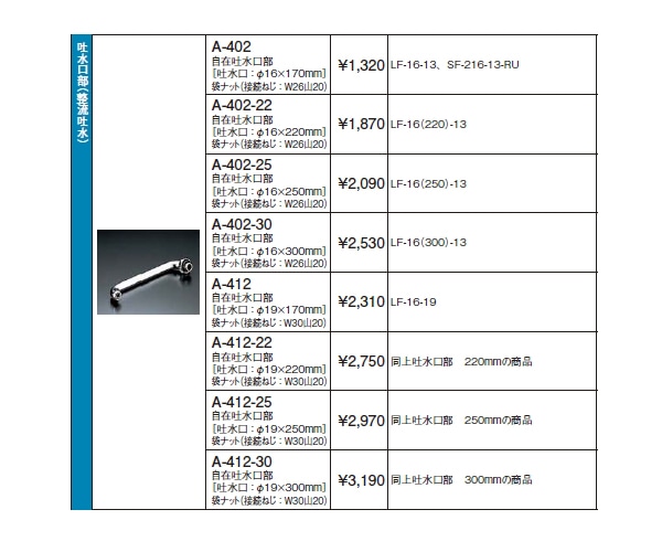 自在吐水口部の商品について、以下の品番商品がございます。