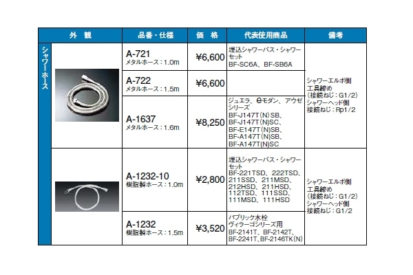 シャワーホース(メタル)の商品について、以下の品番商品がございます。
