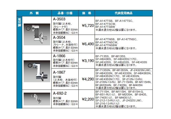 オプションパーツ 取付脚 止水栓付 長さ60mm