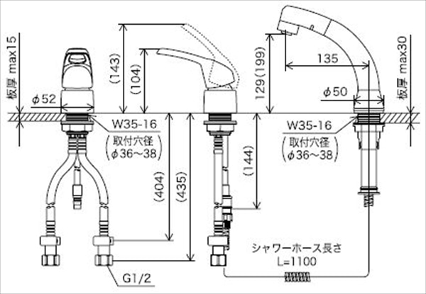 【KVK】 シングルレバー式洗髪シャワー水栓