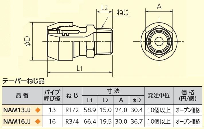 【ブリヂストン】 オスアダ(テーパーねじ)樹脂製