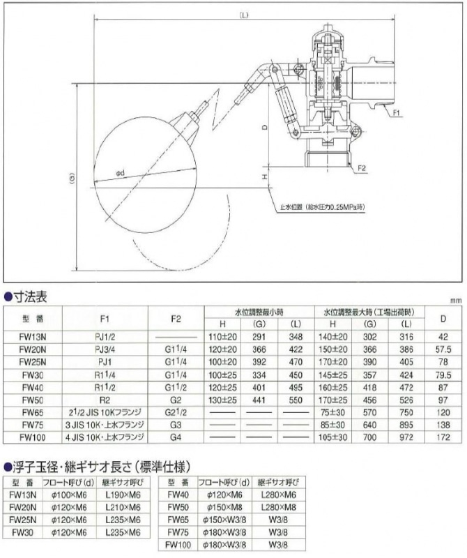 【兼工業】 圧力型複式ボールタップ