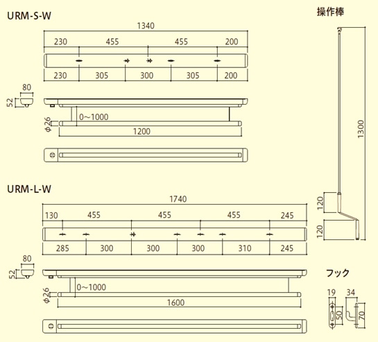 ●全長:URM-S1340mm/URM-L1740mm