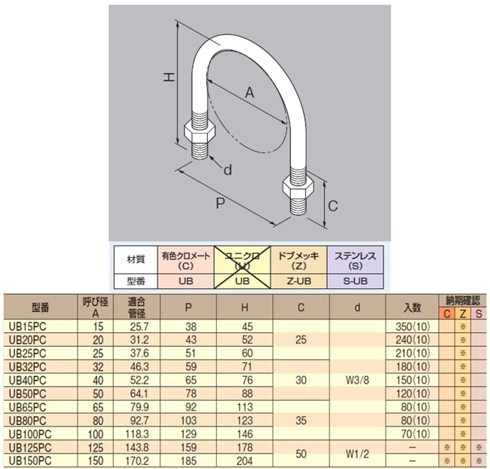 【昭和コーポレーション】 Uボルト(被覆鋼管管用)