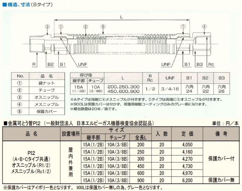【協成】 キーロン金属可とう管PI2(LPG用)