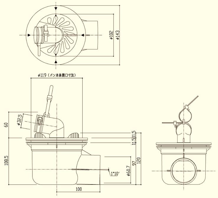 【TOTO】 洗濯機パン用排水縦引きトラップ(透明)