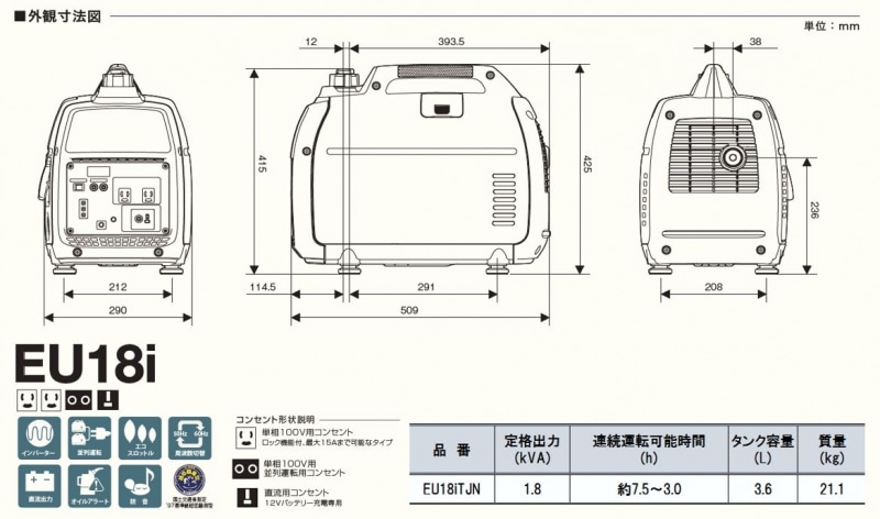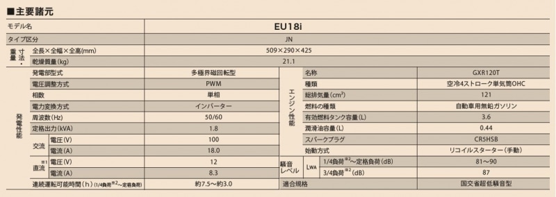 【ホンダパワープロダクツジャパン】 インバーター発電機1.8kVA