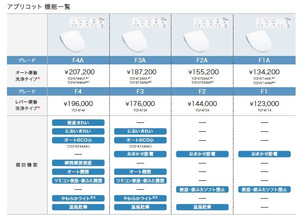 ウォシュレット アプリコットF3A オート洗浄の商品について、以下の品番商品がございます。