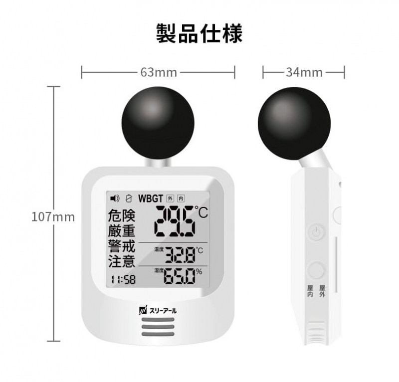 【スリーアールソリューション】 熱中症指数モニター 黒球式