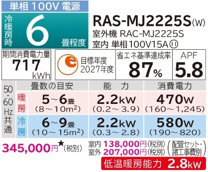 【日立】 日立ルームエアコンMJ 2.2Kw