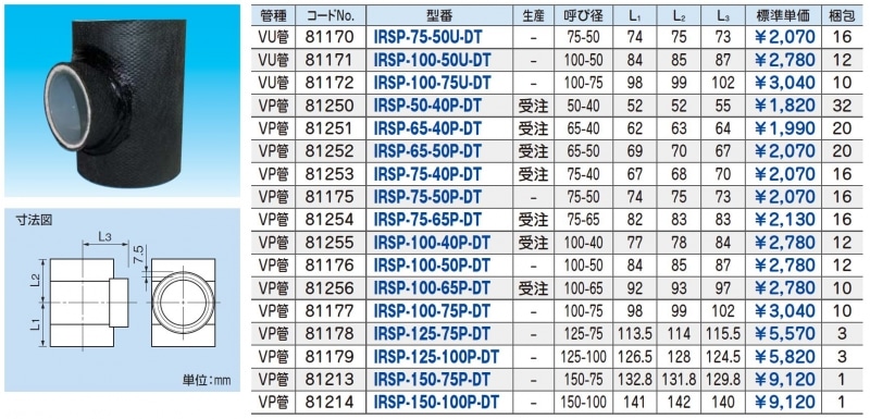 - 合成樹脂管を接合する部材で、管の方向や管径を変えたり分岐する時などに使用。
