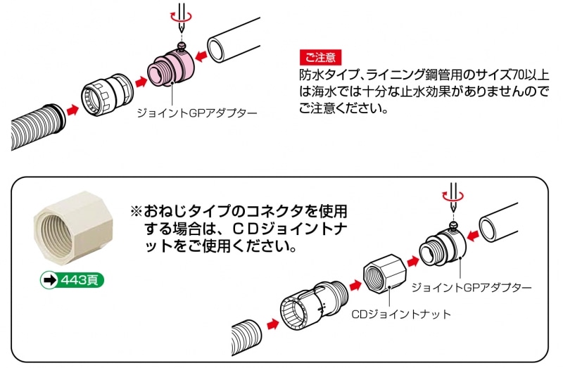 - 合成樹脂管を接合する部材で、管の方向や管径を変えたり分岐する時などに使用。