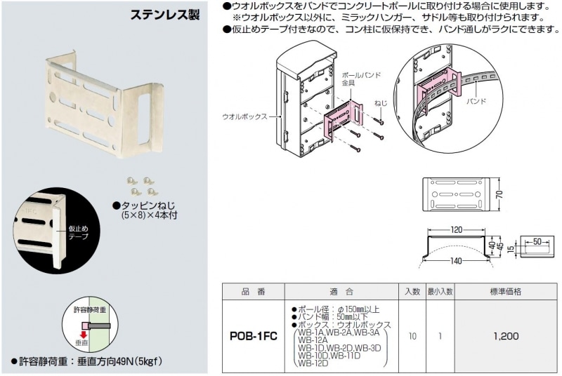 ●ウオルボックスをバンドでコンクリートポールに取り付ける場合に使用します。