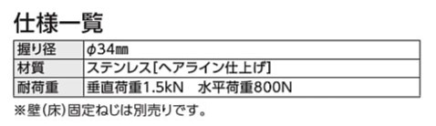 【TOTO】 パブリック用手すりステンレスタイプ(φ34)
