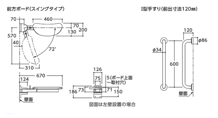 【TOTO】 前方ボード(スイングタイプ/I型手すりセット)