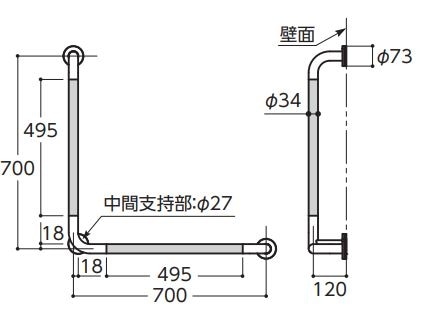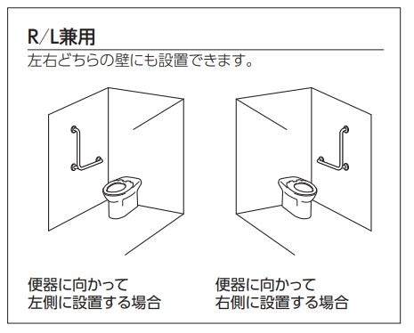 腰掛便器用手すり(固定式) L型(R/L兼用:前出寸法120mm)