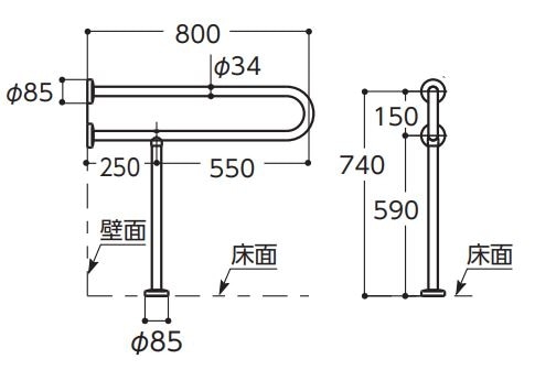パブリック用手すり ステンレスタイプ(φ34)
