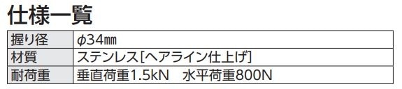パブリック用手すり ステンレスタイプ(φ34)の商品について、以下の品番商品がございます。