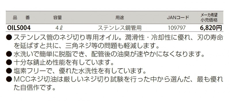 【MCCコーポレーション】 ステンレス管用カッティングオイル(ネジ切り油)