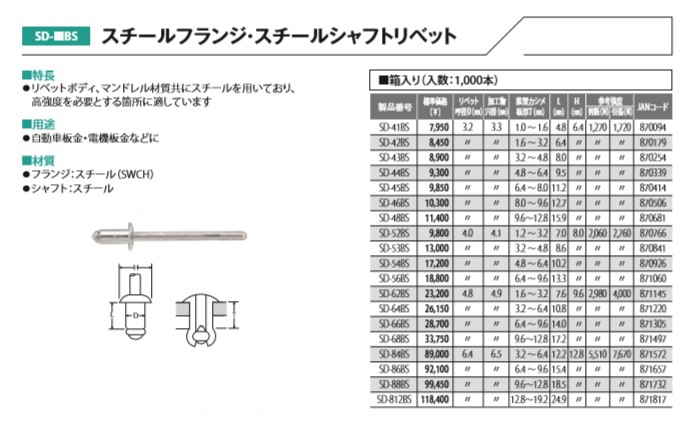 【トップ工業】 スチールフランジ・スチールシャフトリベット