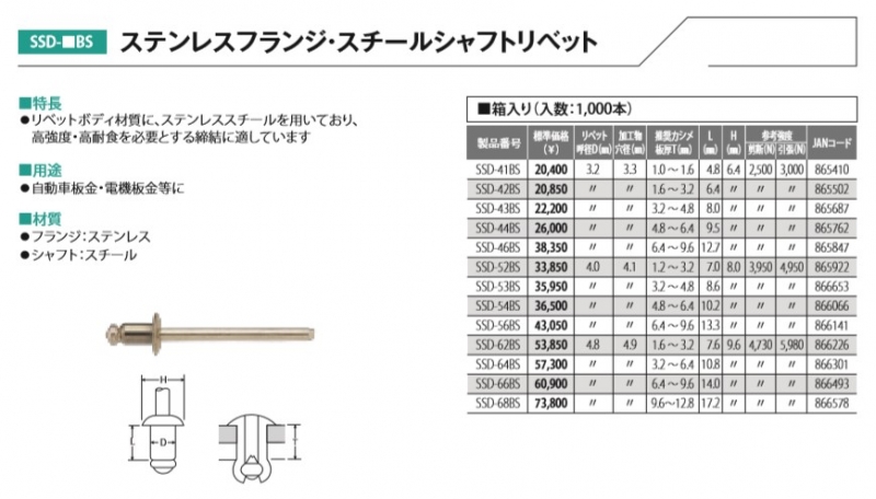 【トップ工業】 ステンレスフランジ・スチールシャフトリベット