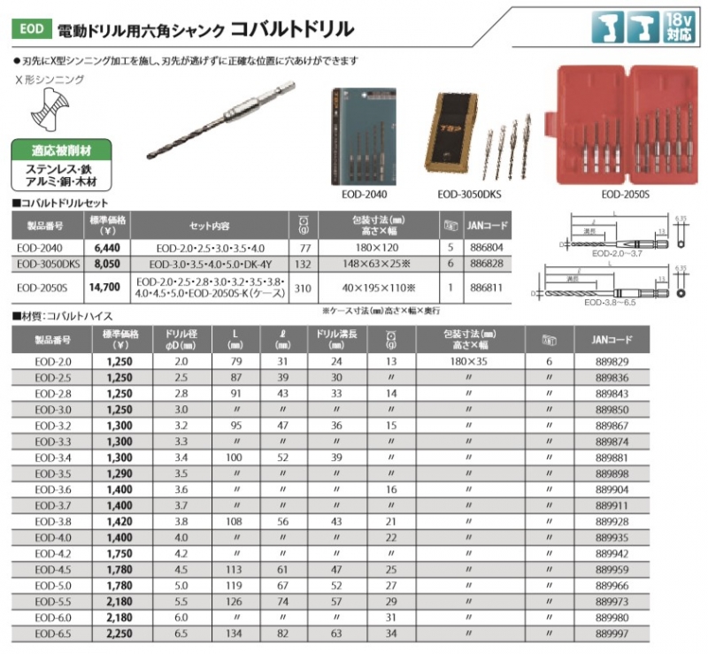 【トップ工業】 電動ドリル用六角シャンク コバルトドリルセット