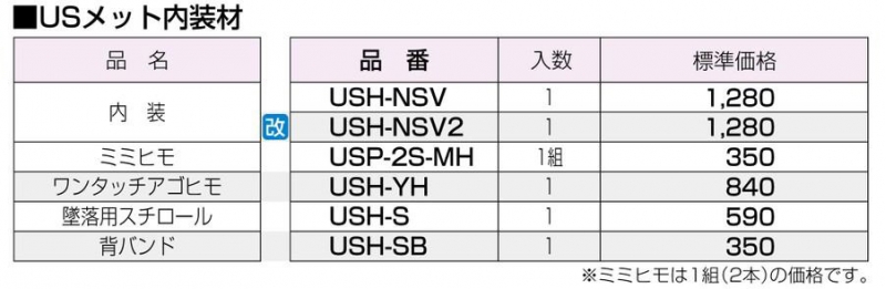 USメット(R)の商品について、以下の品番商品がございます。
