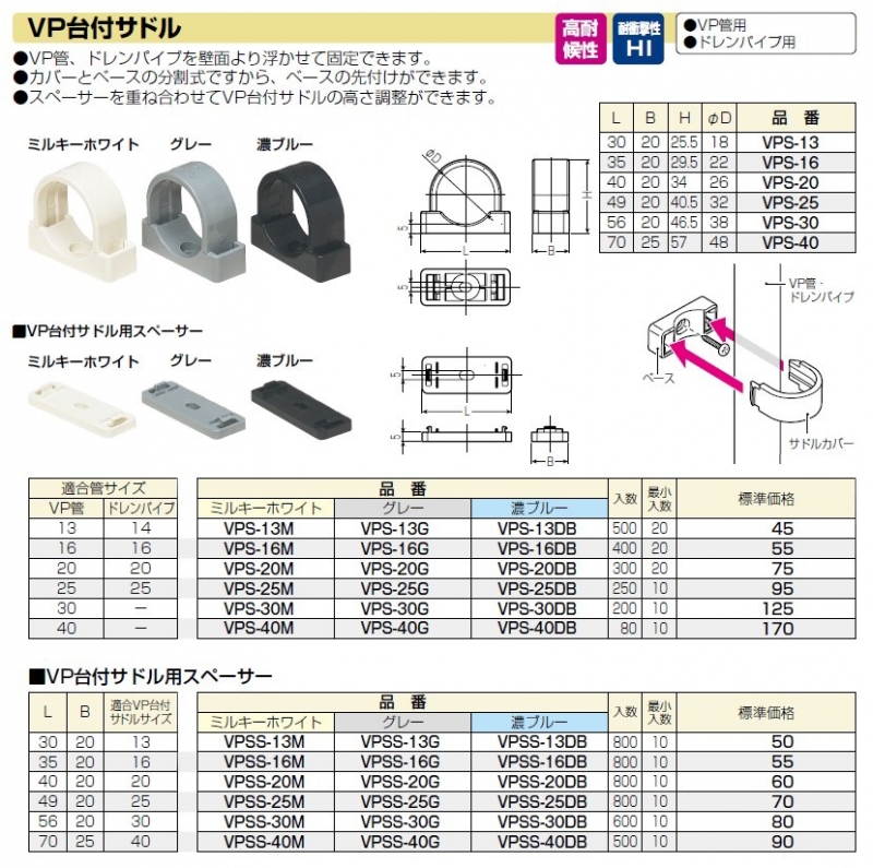 【未来工業】 VP台付サドル