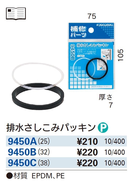 【カクダイ】 排水さしこみパッキン