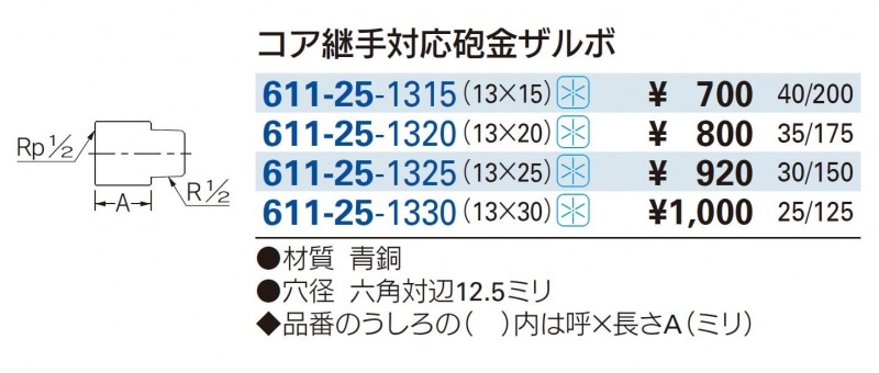 コア継手対応砲金ザルボ